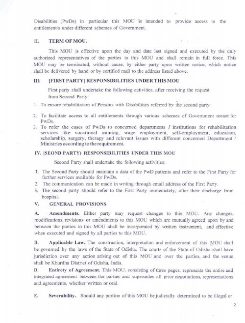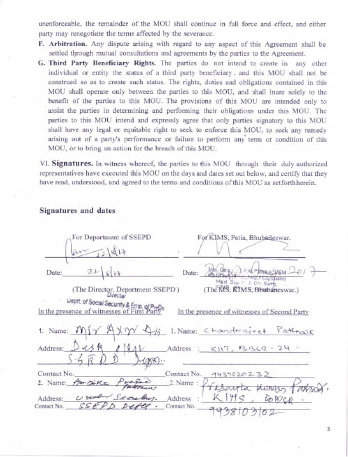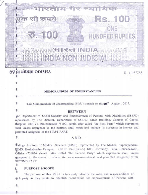 - School of Medical Sciences has signed a Memorandum of Understanding (MoU) with the Department of Social Security and Empowerment of Persons with Disabilities, Government of Odisha, to work for the development and welfare of the Divyangs (Persons with Disabilities) across the state (MOU attached in 6.10B).