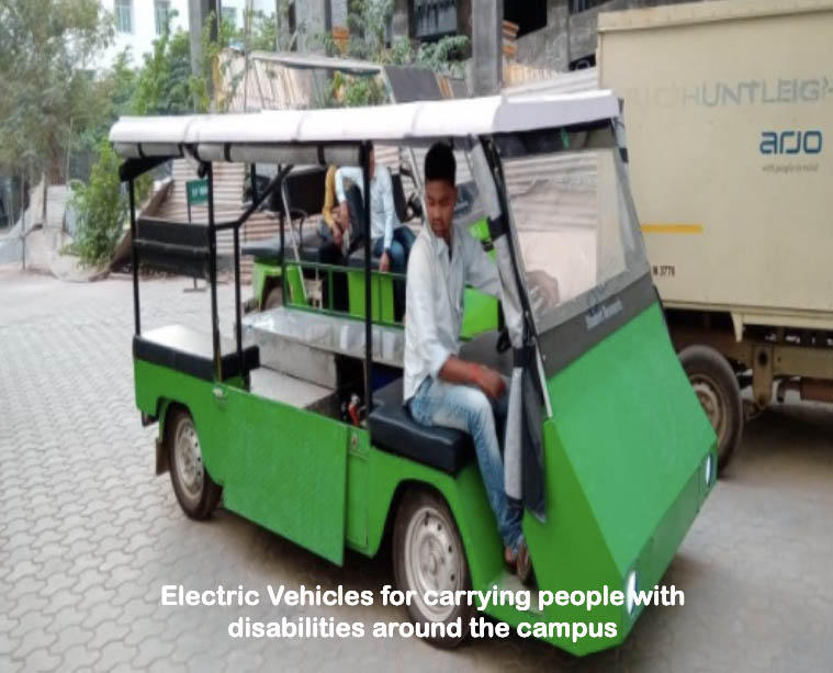 Various hostels, buildings, classrooms, in-campus residence are designed and equipped with accessibility features such as wheelchair ramps, wide elevators etc.