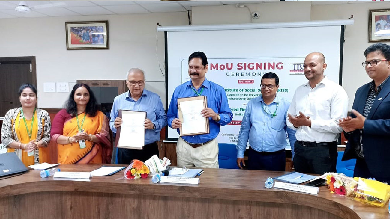 The Kalinga Institute of Social Sciences (KISS)  and The Institute of Chartered Financial Analysts of India (ICFAI), Kolkata signed a Memorandum of Understanding (MoU) on 19th September 2022 to initiate joint academic and research work on areas of exclusion and deprivations. Speaking at the signing ceremony, Dr. Ajay Pathak, Director, IBS stated that KIIT & KISS is one of the most significant institutions and expressed his happiness over the collaboration. Several activities, events, and courses for the students as well as training programs for the teachers will be initiated under the agreement, he assured. Highlighting the common goals of KIIT & KISS and ICFAI, Prof. Deepak Kumar Behera,  KISS said that both the institutions are visionary and change agents for society.