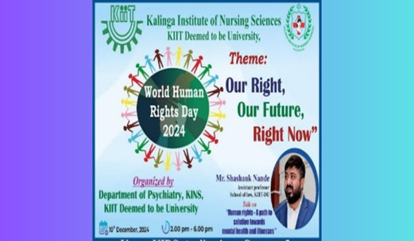 On 10.12.2024, Kalinga Institute of Nursing Sciences (KINS), KIIT-DU, celebrated Human Rights Day 2024 with Focus on Rights and Mental Health on theme “Our Rights, Our Future, Right Now.” Events included a spot painting contest, guest talk by law faculty, and a student role play, emphasizing human rights awareness and their significance in mental health care services.