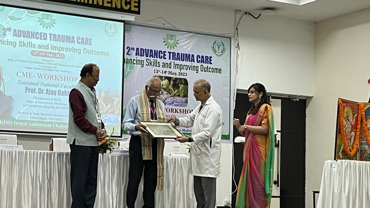 The Kalinga Institute of Medical Sciences (KIMS) held its second advanced trauma care CME-cum-workshop on May 13-14, 2024, at the KAABEEL Simulation Centre. Focused on “Upgrading Skill and Improving Outcomes,” the event was organized by the Department of Critical Care Medicine and drew 100 delegates from various specialties, including anesthesiology, surgery, orthopedics, and emergency medicine. The workshop, inaugurated by KIMS Principal Prof. Ambika Prasad Mohanty and Chief Guest Prof. Dr. Ajay Bahl, featured real-life case scenarios for hands-on practice. Directed by Dr. Devi Prasad Dash and coordinated by Dr. Sansay Mohapatra, the program aimed to enhance trauma care skills and save lives.