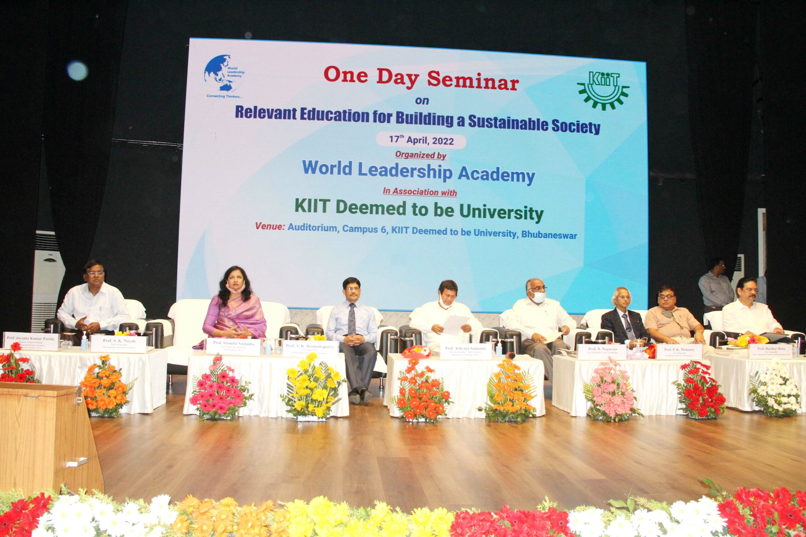 KIIT Deemed to be University & World Leadership Academy (WLA) organized an One Day Seminar on “Relevant Education for Building a Sustainable Society” on 17th April 2022 at Campus-6, KIIT Deemed to be University. The programme was graced by Prof. (Dr.) Achyuta Samanta, Honorable Member of Parliament (Lok Sabha) & Founder, KIIT & KISS, Prof. (Dr.) Sasmita Samanta, Vice Chancellor, KIIT-DU & President, WLA, Prof. (Dr.) N. Nagaraju, Vice Chancellor, Gangadhar Meher University (GMU), Sambalpur, Prof. (Dr.) Prafulla Kumar Mohanty, Vice Chancellor, Khallikote University, Berhampur, Prof. (Dr.) Harihar Hota, Vice Chancellor, Shree Jagannath Sanskrit Vishvavidyalaya, Puri, Prof. (Dr.) Arka Kumar Dasmohapatra, Vice Chancellor, Odisha State Open University, Sambalpur, and Prof. (Dr.) Deepak Kumar Behera, Vice Chancellor, KISS DU among others. Around 450 Principals, Head of the Departments, Faculties, and staffs of various colleges across Odisha have attended the seminar.