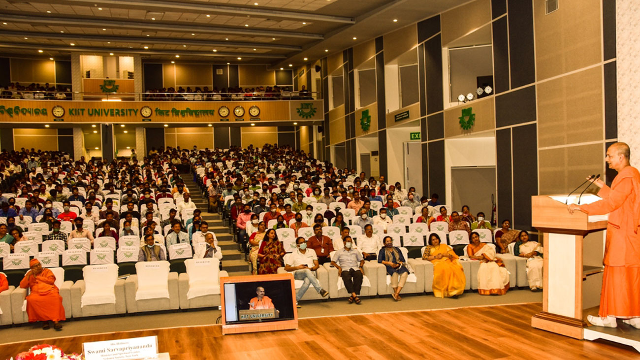 Delivering the lecture, Swami Sarvapriyananda stated that India, unlike the US and other advanced countries, is undergoing transformation at a rapid pace. Young people, particularly students, are at the forefront of this transformation. “While going around the wonderful campuses of KIIT and Kalinga Institute of Social Sciences (KISS) this morning, my feeling was that while Harvard, a great university and one of the best in the world, is the present, this is the future”.