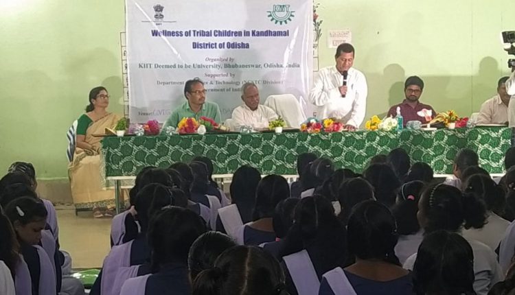 A study on “Wellness of Tribal Children in Kandhamal District of Odisha”, sanctioned by the Department of Science and Technology (DST), Govt. of India, was launched by KIIT at Govt. (SSD) Girls High School, Belapadar on 24th August 2022. Inaugurating the study, Prof. Achyuta Samanta, Founder, KIIT & KISS said that the welfare and wellbeing of tribal children are very close to his heart and he is delighted that senior faculty members from his institution share this dream and are coming forward to work for it. Speaking on the occasion, Dr. Rojalin Sahu, Associate Professor in Chemistry & Associate Dean of Central Research Facility, KIIT Deemed to be University, enlightened the students about the importance of safe and quality drinking water. The objective of the project is to test and create awareness on safe and quality drinking water, oral and menstrual hygiene among school students. Sharing further details, Dr. Sahu, who is also its PI, informed that over the next year, the ambitious project will cover the target population in a large number of schools in the district.
