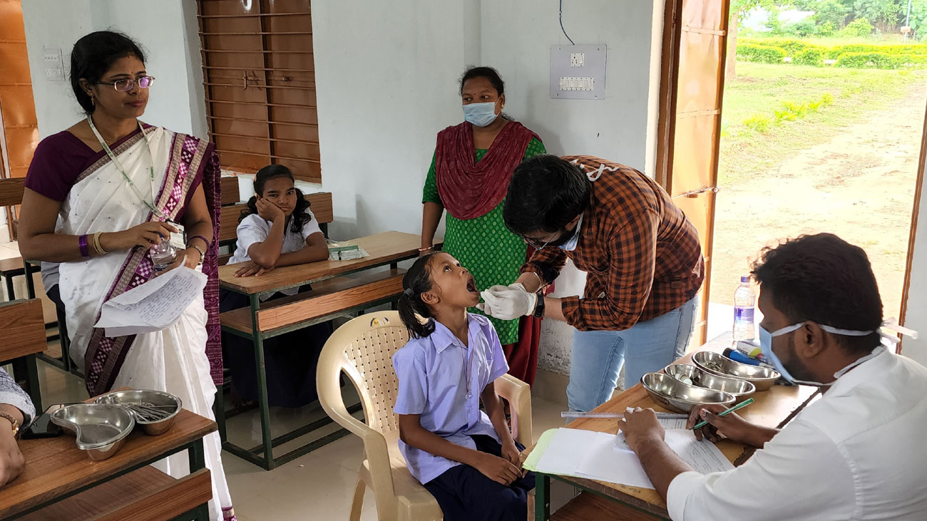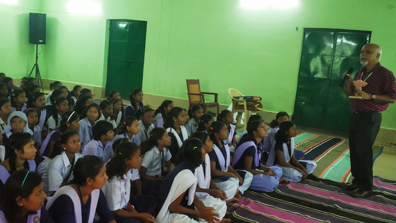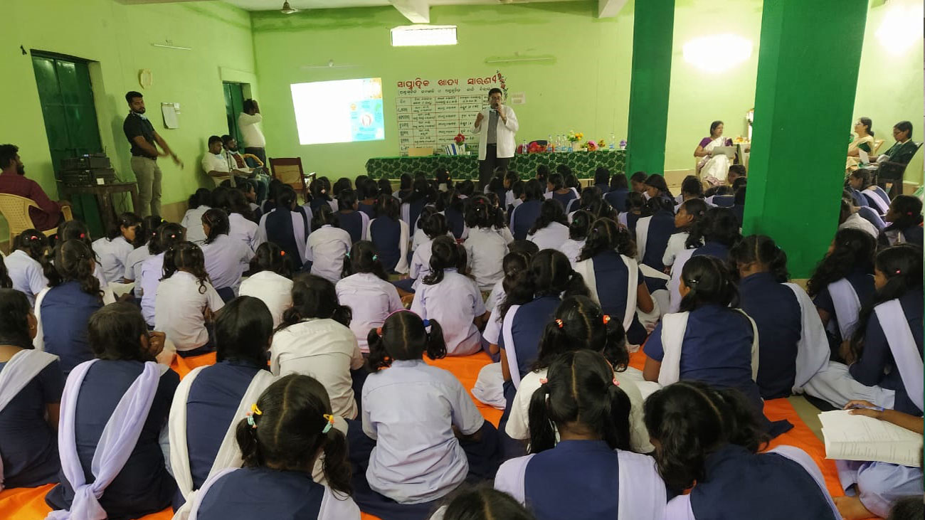 Brig. (Dr.) Sudhanshu Rath and Dr. Jyochnamayi Panda, both Professors in Obstetrics & Gynaecology at KIMS, educated young girls on menstrual health, inspiring them to welcome the change as progress in the maturing process. Dr. P.V. Samir, Associate Professor, Paediatric Dentistry, KIDS with his team of interns – Kanhu Keshav Mohapatra, Kumar Garv, Sayandip Sengupta, Prateek Choudhury – and Dental Hygienist Prahlad Das surveyed and educated the children on their oral and dental health. The Head Mistress, Govt. (SSD) Girls High School, Belapadar; B.D.O. Phulbani; and District Welfare Officer, Phulbani were present on the occasion. The programme was managed by the PA-ITDA, Phulbani. The vote of thanks was proposed by Dr. Jyochnamayi Panda, Co-PI & Head, Gynecology Dept., KIMS.